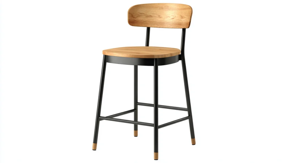 At the lower end of the market, I found stools with similar visual profiles but noticeably inferior construction. Many featured thinner metal, less precise welds, and engineered wood seats rather than solid hardwood. While these options were $20-30 less expensive per stool, the difference in quality was immediately apparent when examining them in person. The cheaper alternatives often wobbled, had rough or sharp edges on the metal components, and featured wood finishes that appeared artificial or plasticky.